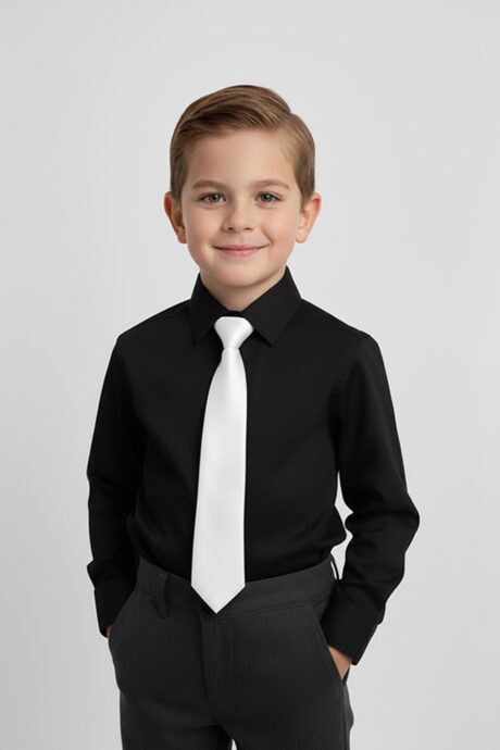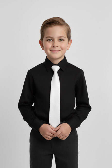 Erkek Çocuk Uzun Kol Siyah Gömlek ve Beyaz Kravat Takım