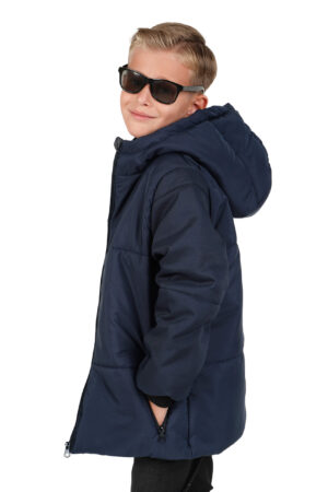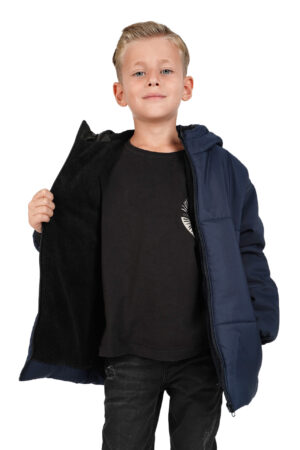 Erkek Çocuk Su ve Rüzgar Geçirmez İçi Kürklü Kapüşonlu Mont 20cm Lacivert