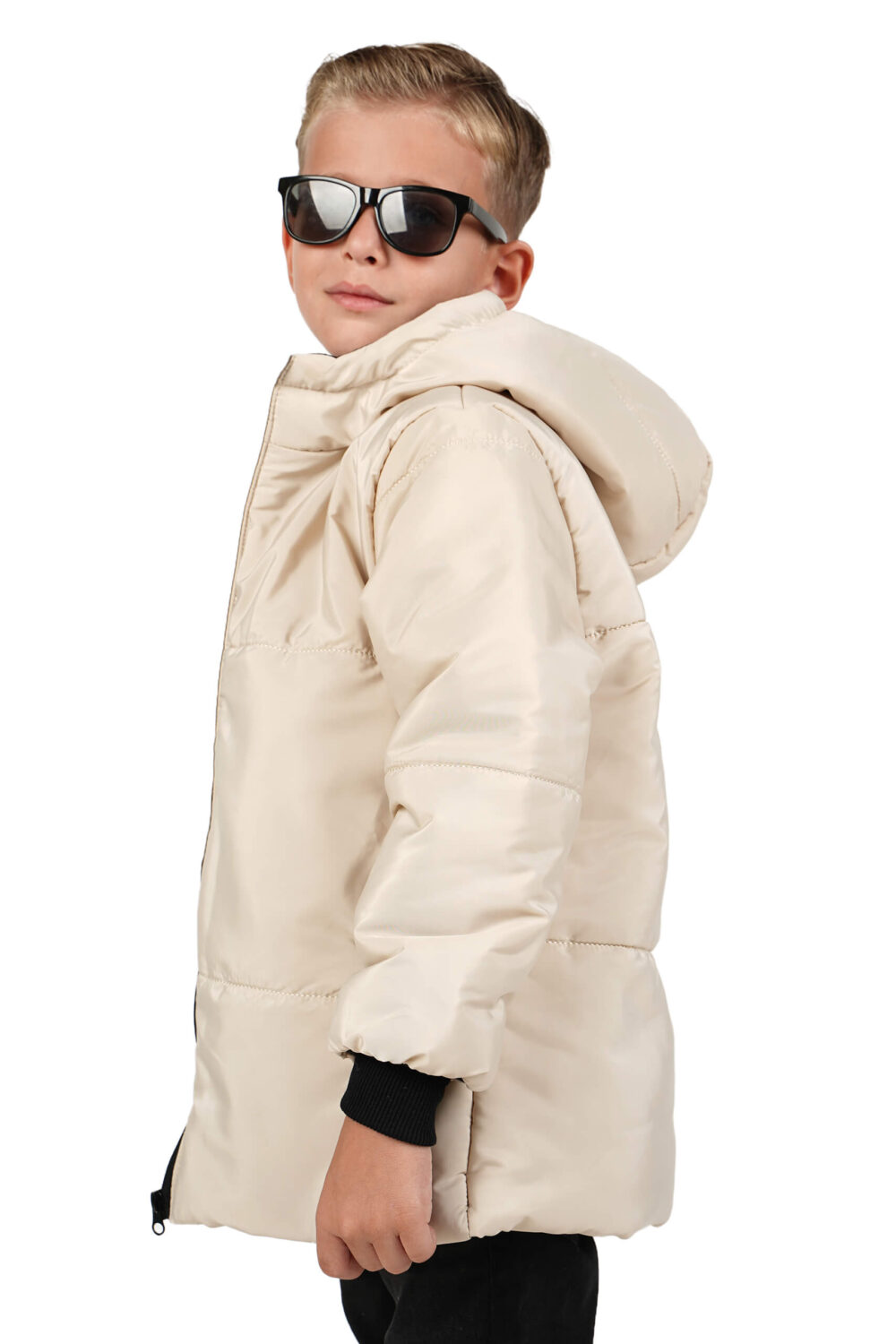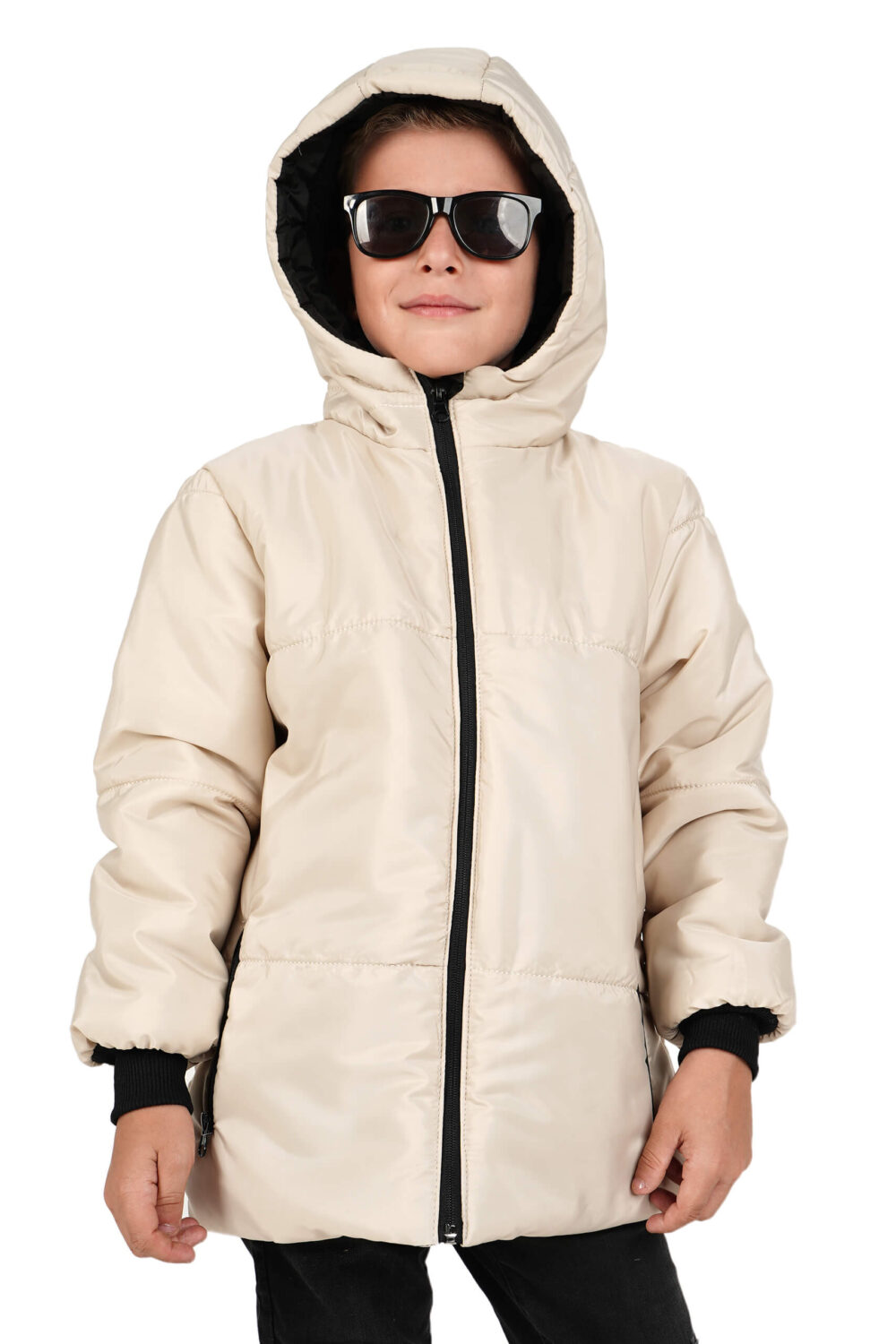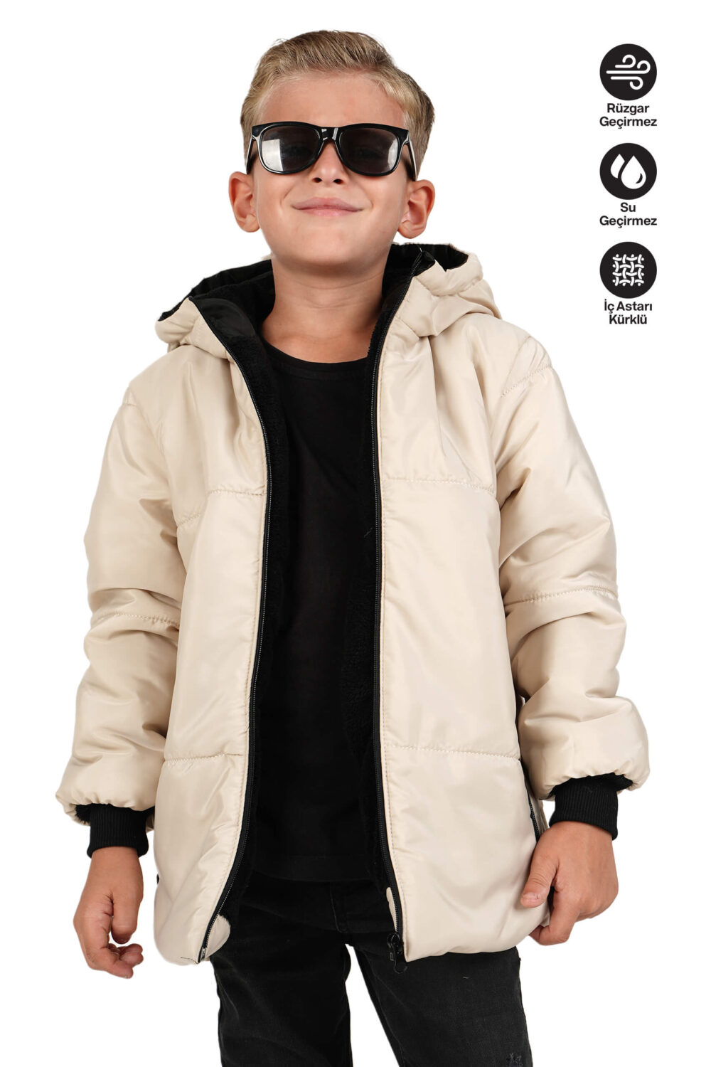 Erkek Çocuk Su ve Rüzgar Geçirmez İçi Kürklü Kapüşonlu Mont 20cm Ekru