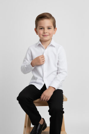 Minik beylerin şıklığını tamamlayan zamansız bir parça! Klasik ve sade tasarımıyla öne çıkan Erkek Çocuk Beyaz Gömlek, düğün, doğum günü, bayram ve tüm özel günler için ideal bir tercihtir.
