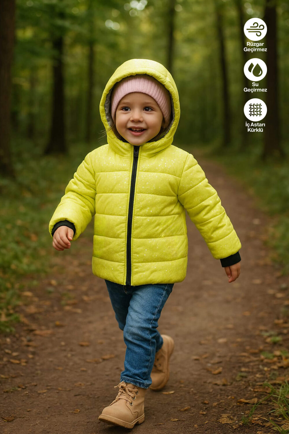 Suya ve rüzgara karşı dayanıklı kumaşı sayesinde çocuklar dışarıda özgürce oynarken üşümeden keyifli vakit geçirebilir. İç kısmındaki yumuşacık kürk astar ekstra sıcaklık sağlar, kapüşonlu tasarımı ise rüzgarlı havalarda tam koruma sunar.