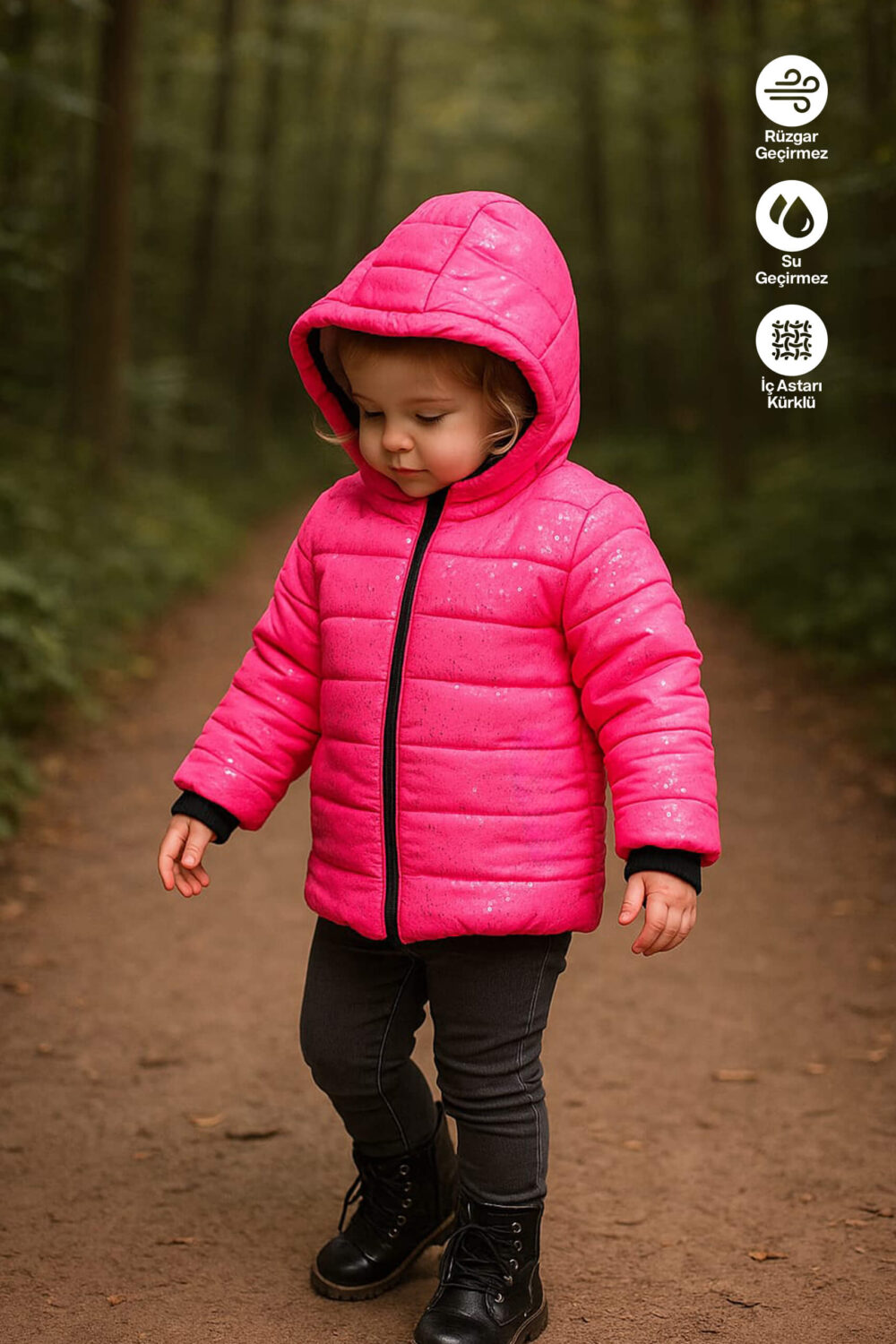 Kız Çocuk Su ve Rüzgar Geçirmez İçi Kürklü Kapüşonlu Mont, hem sıcak tutan yapısı hem de dayanıklı dış yüzeyiyle konfor ve korumayı bir araya getiriyor.