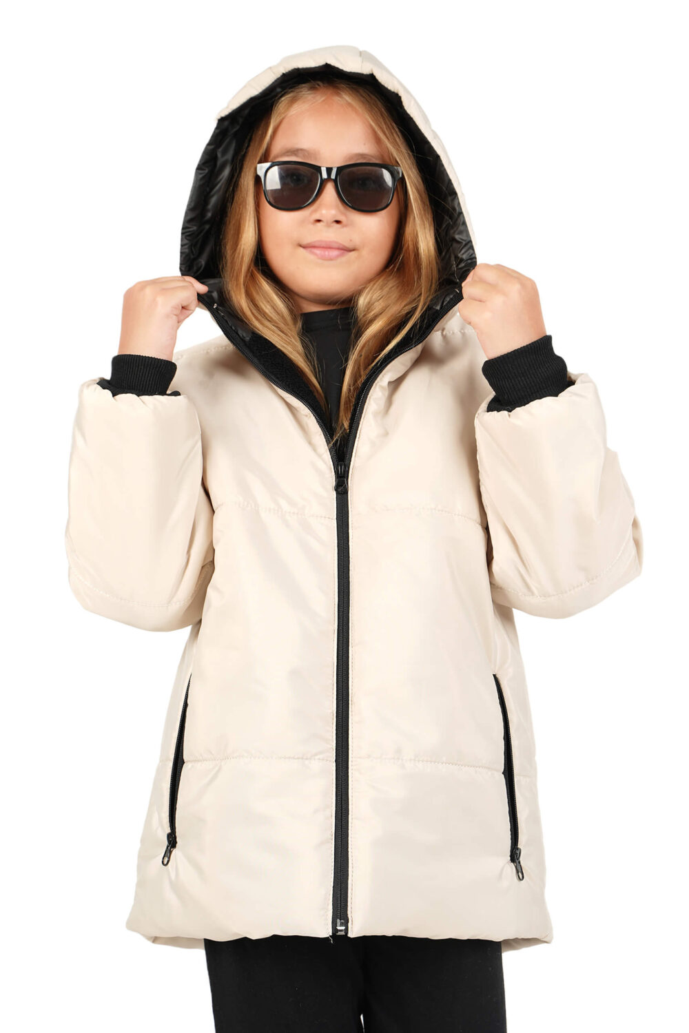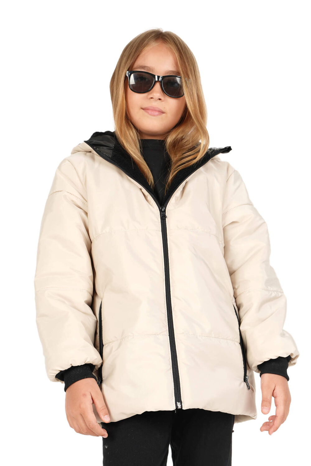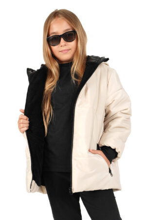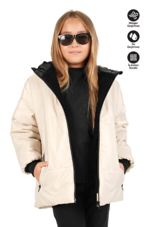 Kız Çocuk Su ve Rüzgar Geçirmez İçi Kürklü Kapüşonlu Mont 20cm Ekru