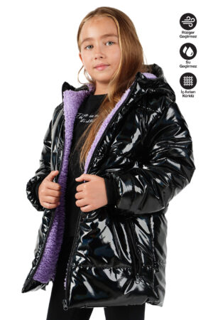 Kız Çocuk Su ve Rüzgar Geçirmez İçi Kürklü Kapüşonlu Mont, hem sıcak tutan yapısı hem de dayanıklı dış yüzeyiyle konfor ve korumayı bir araya getiriyor.